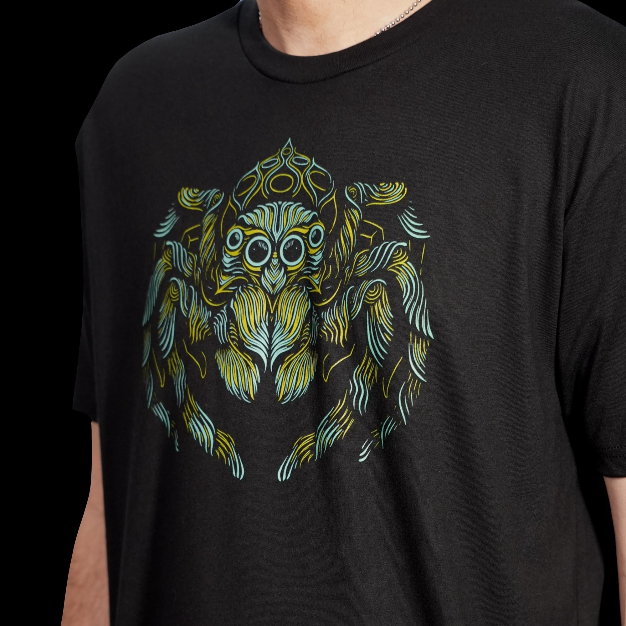 Printed by hand with the highest quality inks, wont fade or wash out. Shirts listed as "black" may be a heather or a true black.